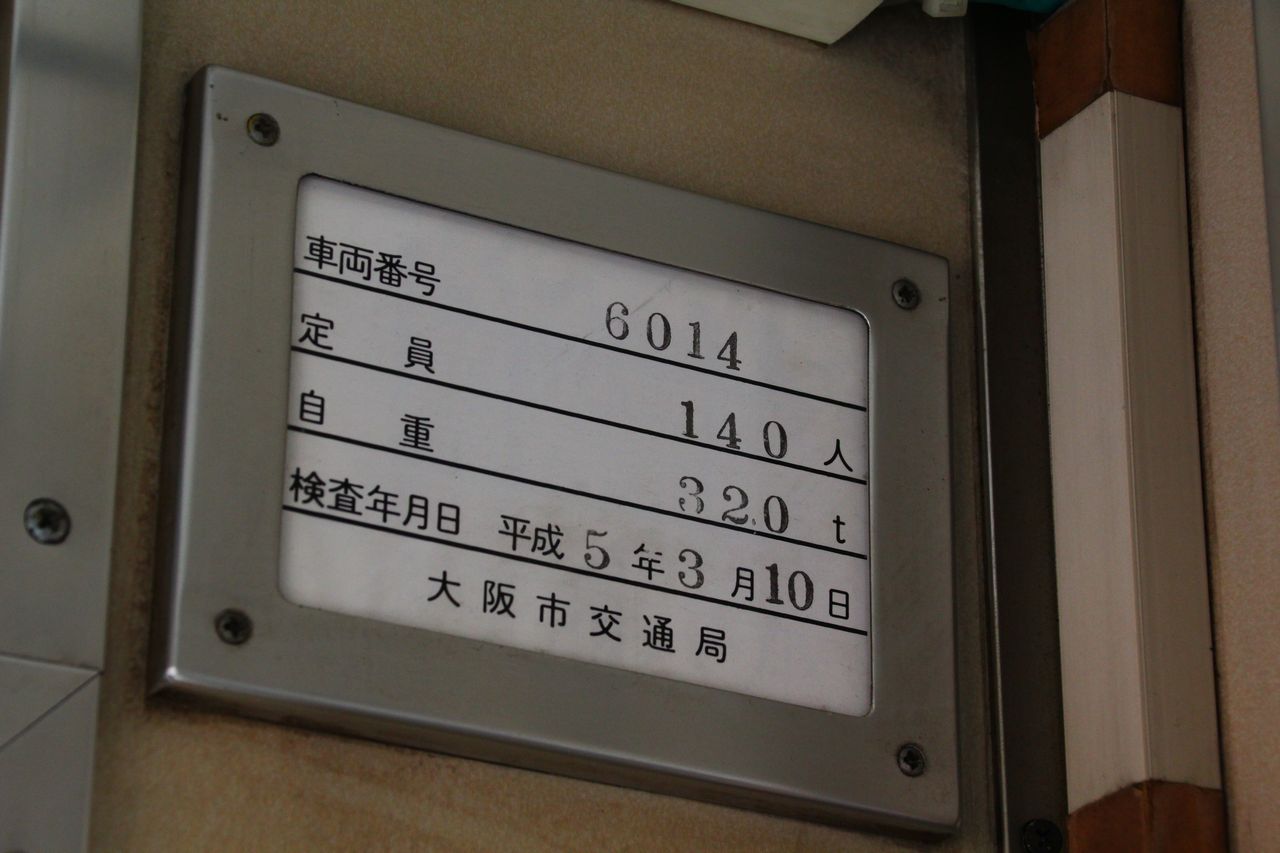 6014号車が解体保留車となり、森之宮検車場にて保存されている。2008(平成20)年3月23日に行われた「なつかし車両まつりin森之宮」で初めて一般公開され、方向板フックなど設置する一部復元工事が行われた後、側面帯撤去・頬紅顔化などの復元工事が行われた。