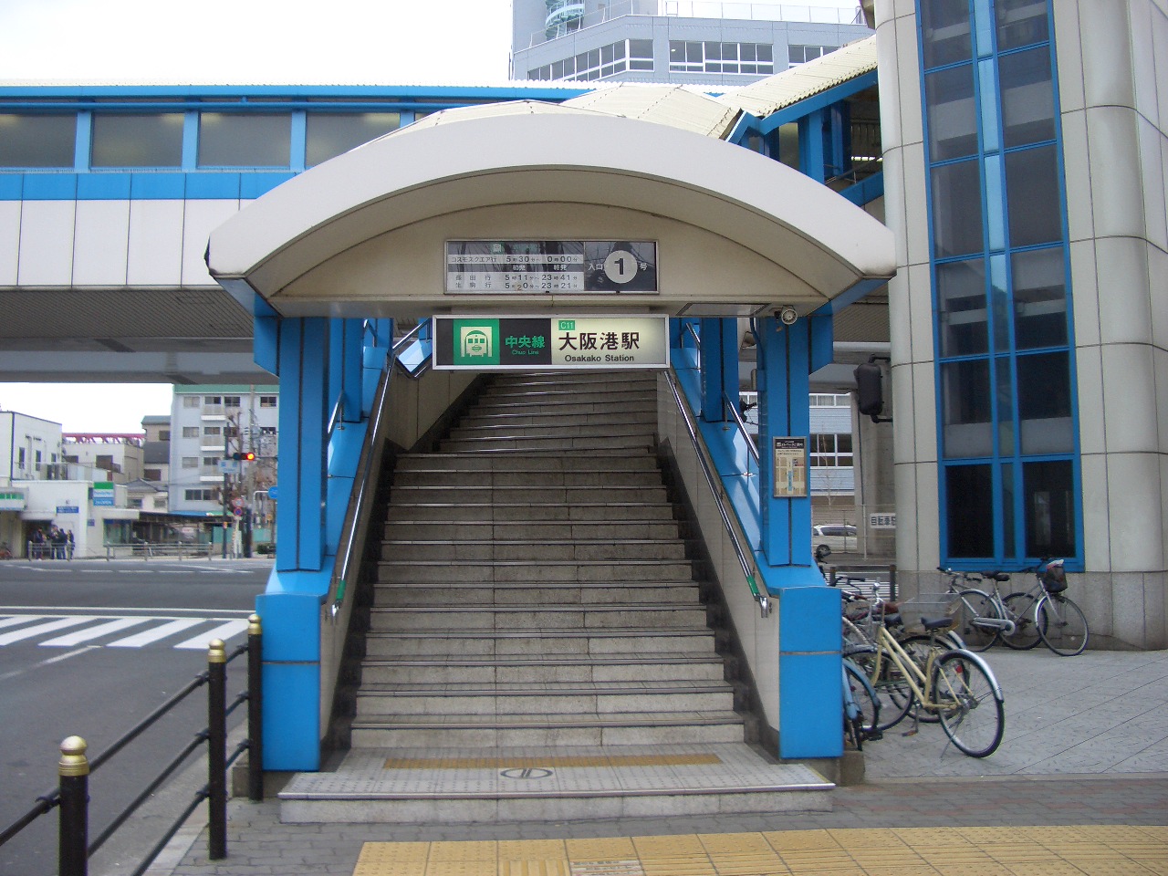 大阪港駅は、1961(昭和36)年12月11日の中央線:大阪港〜弁天町駅間の開業時に開業した駅である。大阪市港区に位置し、高架構造で1面2線を有する。