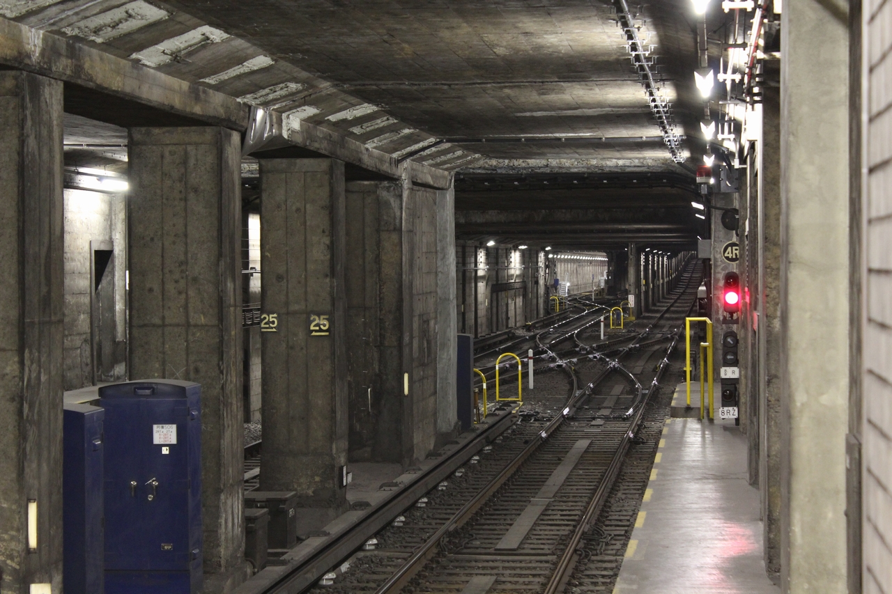 2005(平成17)年5月3日に本町駅付近で不発弾撤去作業が行われたため、中央線では阿波座〜森ノ宮間の運転を一時見合わせた。その際は阿波座止の列車が運転され、阿波座到着後は長田方に設けられている片渡り線で入換を行い、折返しを行った。 |