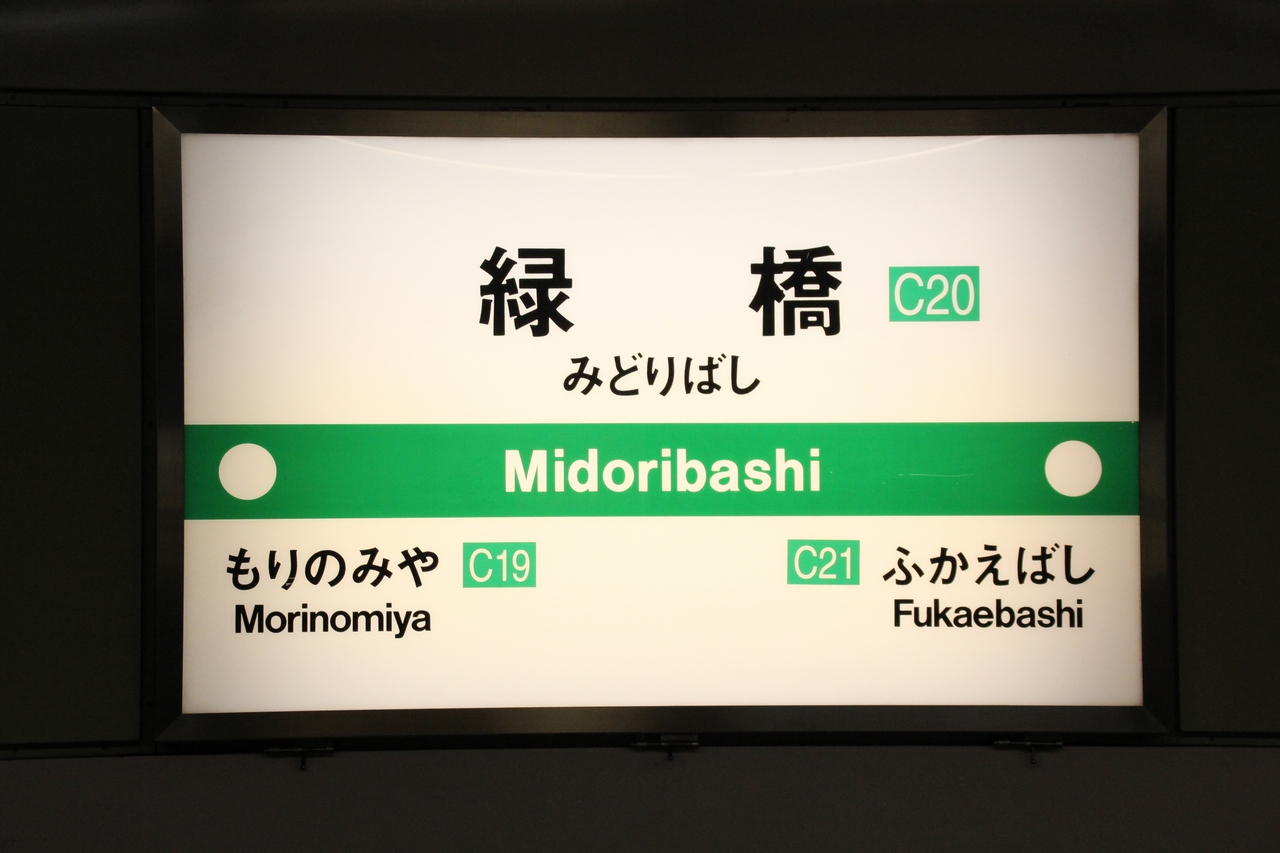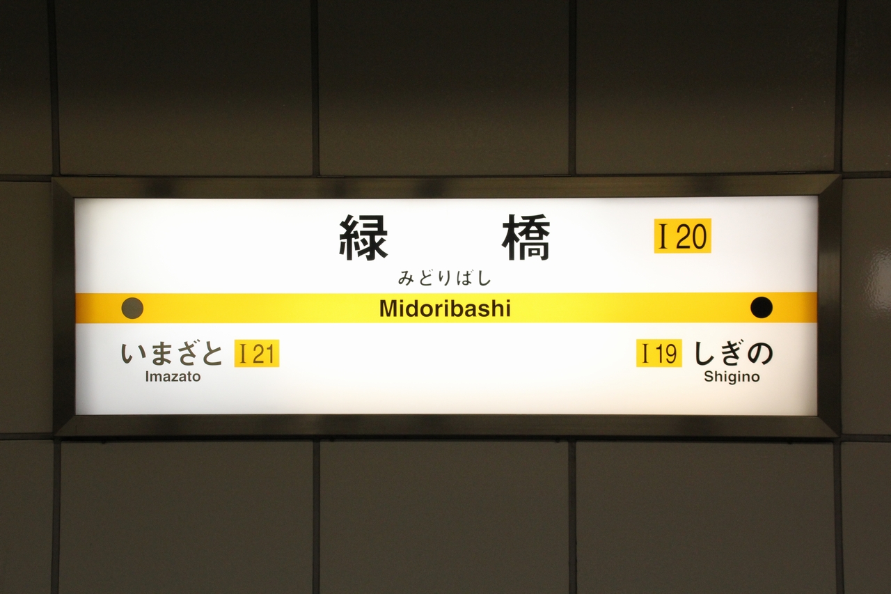 中央線緑橋駅は、今里筋線建設工事のため停車位置を1両分長田寄りに移動した。2007(平成19)年2月23日までは旧型の行灯式を使用していたが、翌日よりLCD式のものに更新された。かつて出発指示合図がなかったが、2007(平成19)年3月24日から出発指示合図(発車メロディー)の使用が開始されている。中央線と今里筋線の連絡通路には、動く歩道が設置されている。 |
