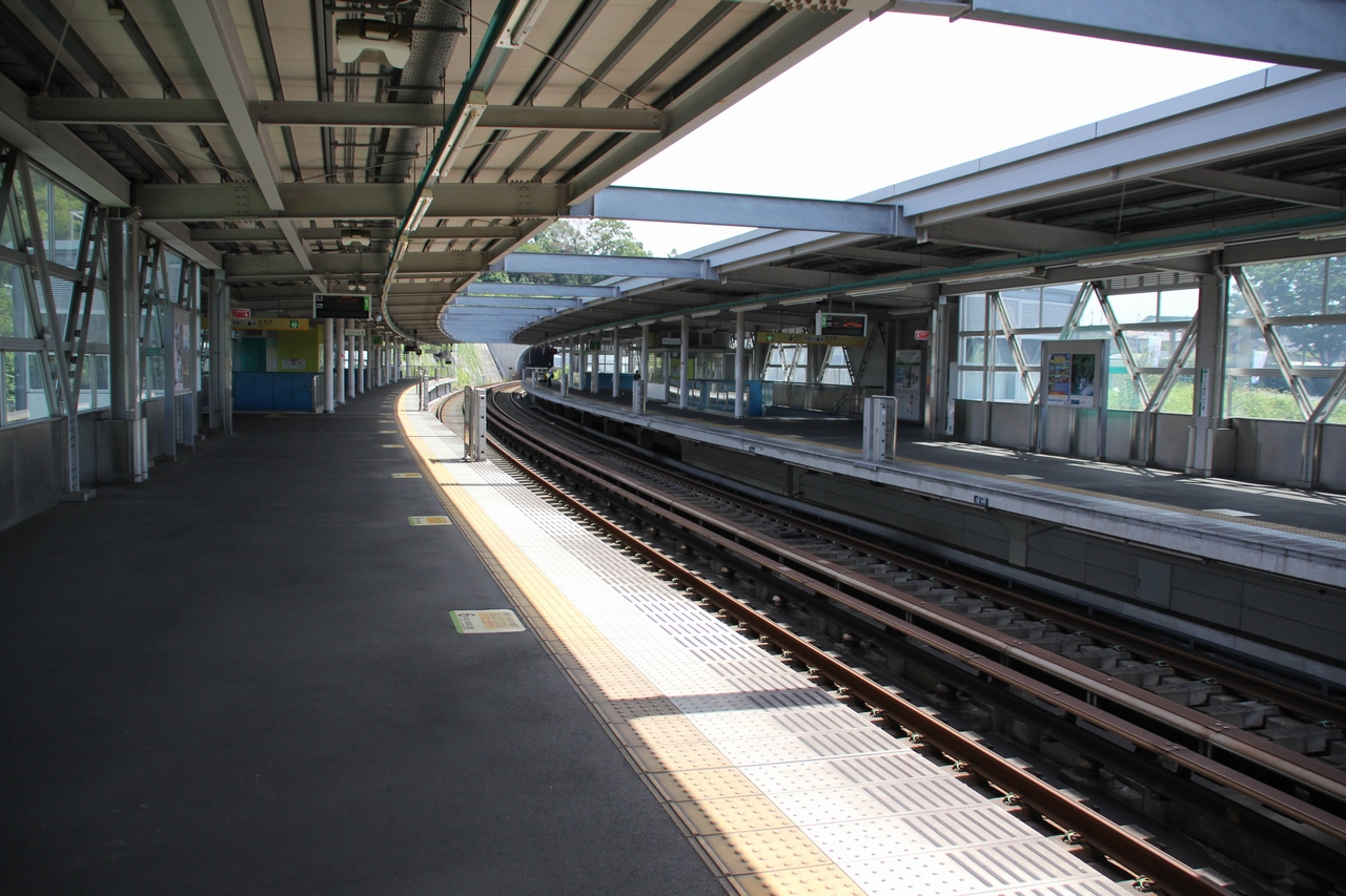 ホームはカーブしている。長田方は近鉄けいはんな線で代表する撮影地となっている。 |