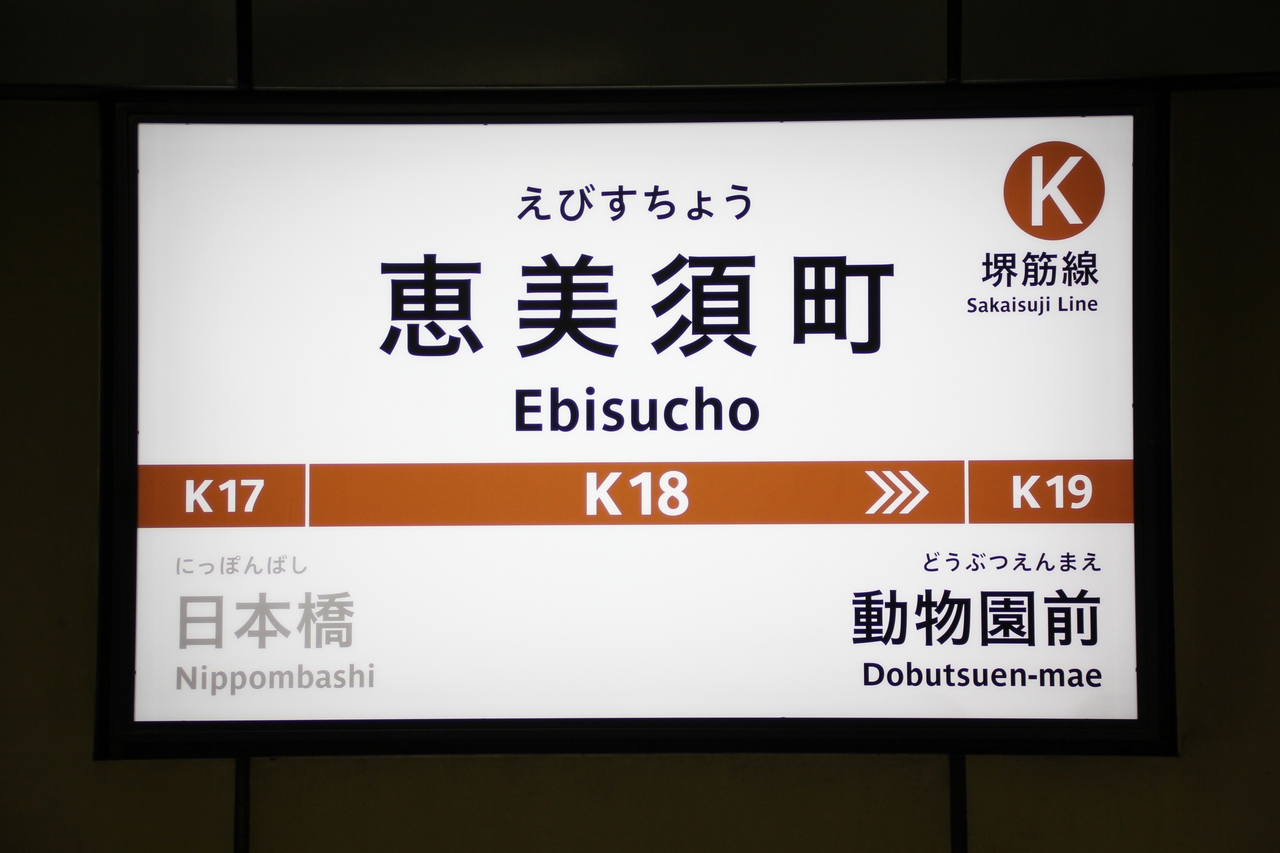 恵美須町駅は、1969(昭和44)年12月6日の堺筋線:天神橋筋六丁目〜動物園前駅間の開業時に開業した駅である。大阪市浪速区に位置し、地下構造で1面2線を有する。 |