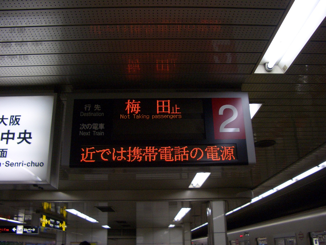 2012(平成24)年2月22日、清掃員の倉庫内での喫煙が原因でF階段下で火災が発生した。乗客は全員無事であったが、乗務員・駅係員17名が軽症となった。御堂筋線は9時01分〜10時40分まで運転を見合わせ、運転再開後はしばらく全列車が梅田駅を通過となった。 |
