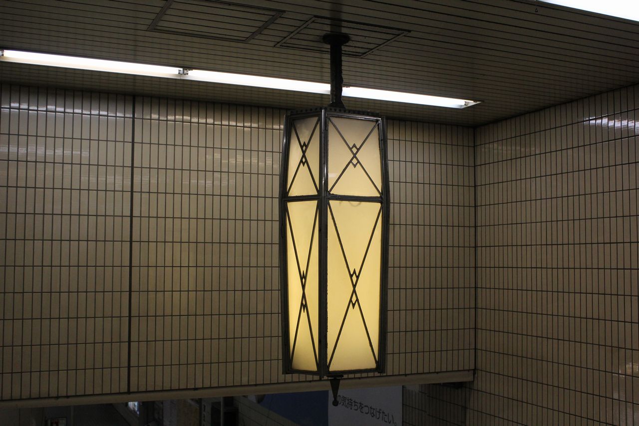 御堂筋線 B階段に残る開業当初のシャンデリア |
