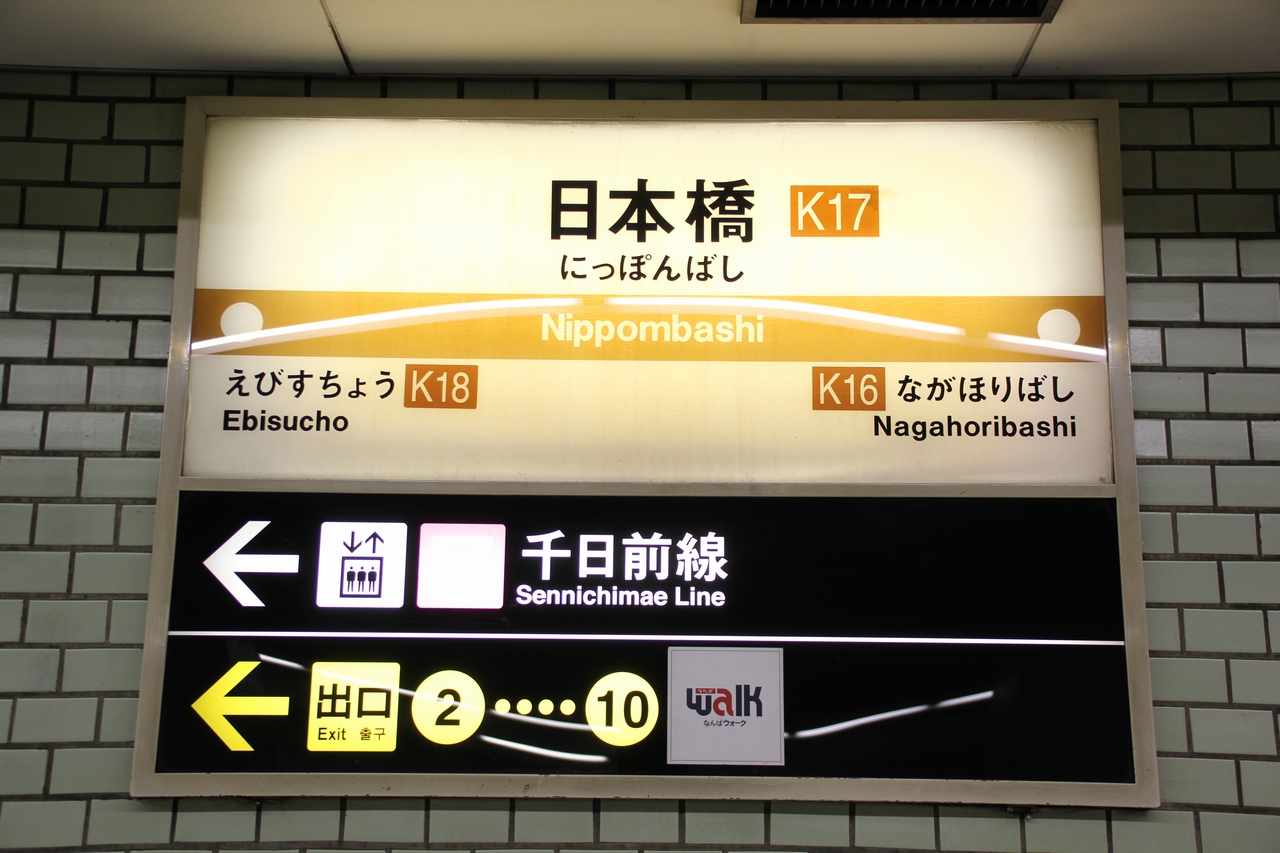 日本橋駅は、1969(昭和44)年12月6日の堺筋線:天神橋筋六丁目〜動物園前駅間の開業時に開業した駅である。大阪市中央区に位置し、地下構造で千日前線は1面2線、堺筋線は2面2線を有する。