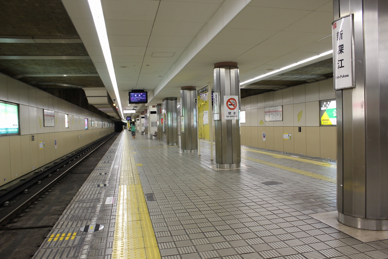 新深江駅は、1969(昭和44)年9月10日の千日前線:今里〜新深江駅間の開業時に開業した駅である。大阪市東成区に位置し、地下構造で1面2線を有する。建設時の仮称は新深江。