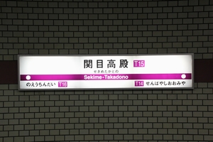建設時の仮称は森小路駅であったが、正式決定の際に関目駅になった。その後地元住民の要望から、「関目(高殿)」と表記されるようになり、1997(平成9)年8月29日に「関目高殿」が正式な駅名となった。今里筋線の関目成育駅とは近接しているが、改札内で繋がっておらず、乗換えはできない。 |