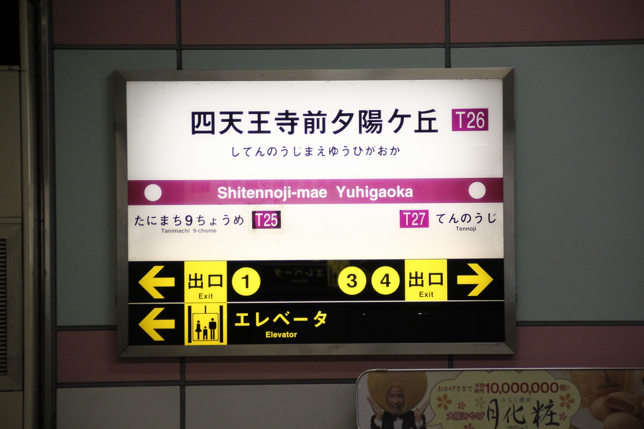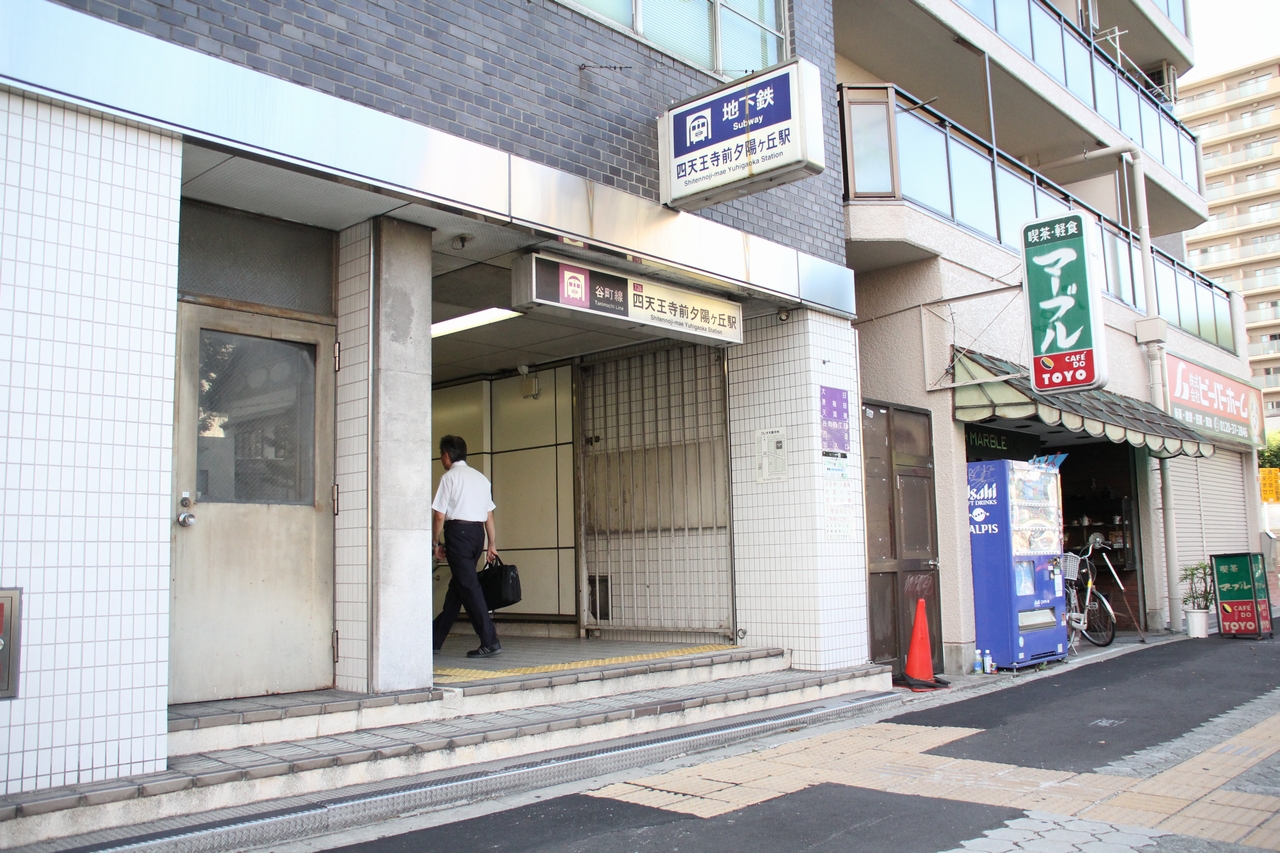 四天王寺前夕陽ヶ丘駅は、1968(昭和43)年12月17日の谷町線:谷町四丁目〜天王寺駅間の開業時に四天王寺前駅として開業した駅である。大阪市天王寺区に位置し、地下構造で2面2線を有する。建設時の仮称は夕陽ヶ丘。