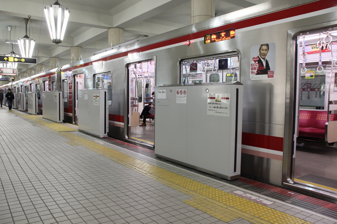 2010(平成22)年度から可動式ホーム柵設置に関する調査を行ってきた。2014(平成26)年2月13日の千日前線可動式ホーム柵設置発表時には、2014(平成26)年度中に御堂筋線の心斎橋駅・天王寺駅設置されることも発表されていた。2015(平成27)年1月7日に心斎橋駅・天王寺駅に設置されることが正式に発表され、使用開始されている。