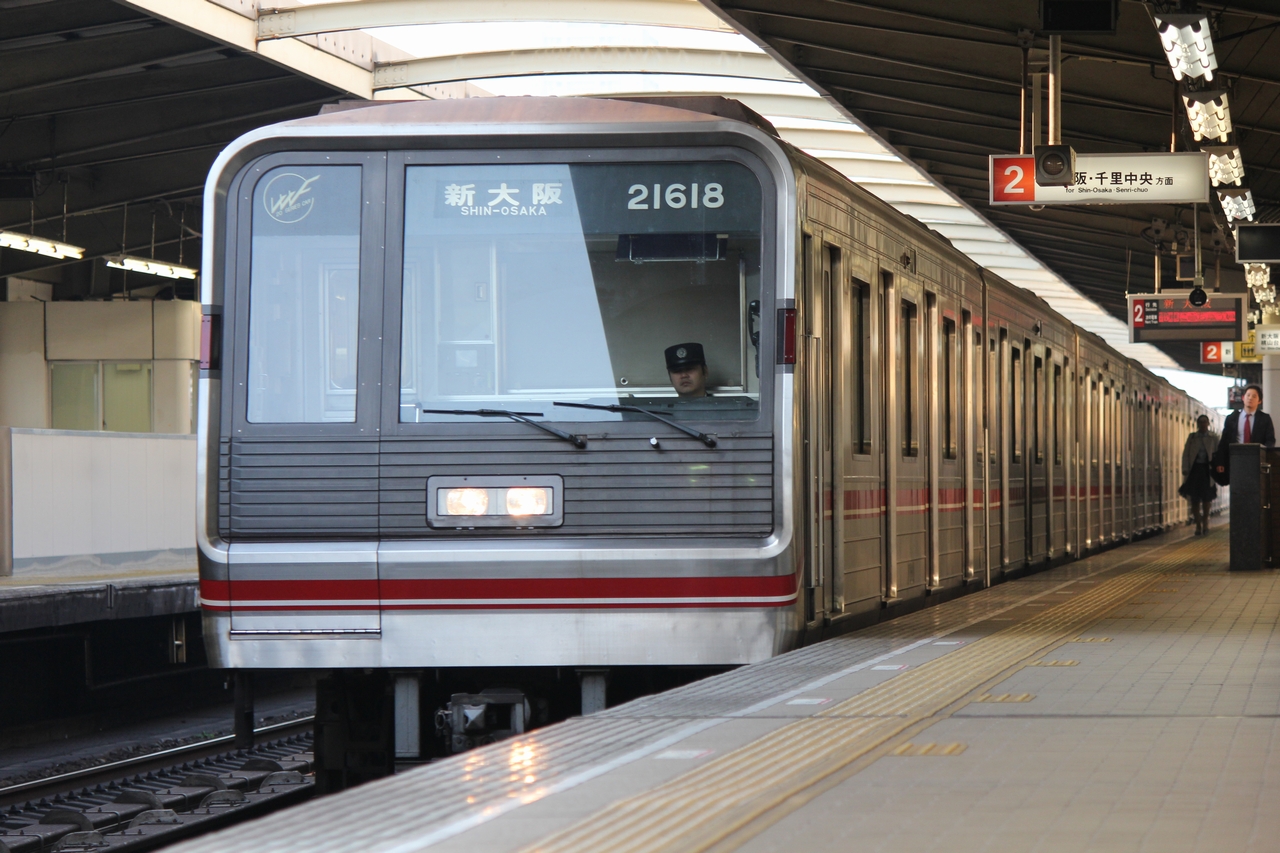●梅田行き かつて準最終・最終で運転されていた梅田行きは、それぞれ梅田到着後に準最終は中津、最終は新大阪へ回送され留置されていた。これは寝過ごしてしまった場合でも、中津や新大阪より便利な梅田で降車する事で旅客の利便性を図ろうと考えられたものだった。2013(平成25)年3月23日の終発延長に伴うダイヤ改正で、梅田行きはそれぞれ中津・新大阪まで営業化することになり、梅田行きは消滅した。 |