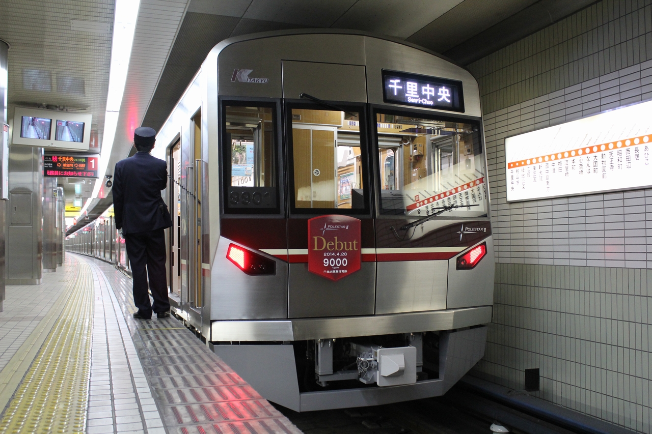●江坂2番線折り返し列車 早朝・深夜には、江坂駅2番線から中百舌鳥方面へ折り返す列車が存在する。2018(平成30)年3月24日改正ダイヤで平日ダイヤ・土休日ダイヤともに1日4本存在しており、早朝1本は回送から、残りは江坂行きからの折り返しとなる。この時は駅の旅客案内表示装置は1番線・2番線ともに「なかもず」表示となるが、先発・次発の表示はなく、自動放送でも案内はない。 |