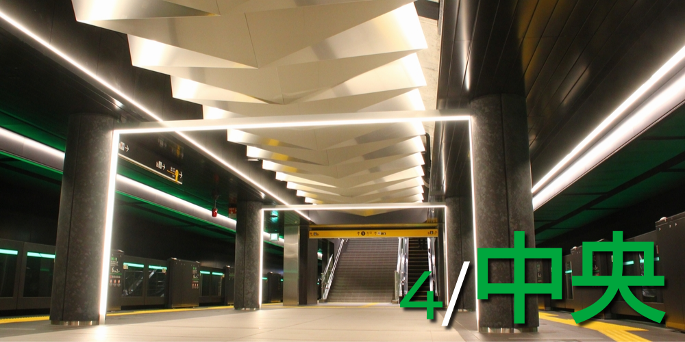 中央線は2024(令和6)年に全駅で設置が完了した。このうち谷町四丁目・夢洲の2駅では、他の駅と異なる配色となっている。