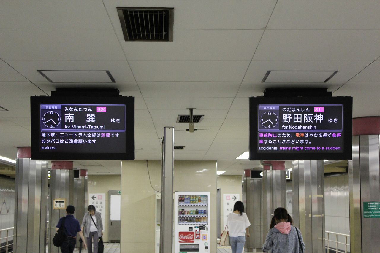現在の旅客案内表示装置はLCD式で、基本は日本語・英語の2か国語で、一部は日本語・英語・中国語・韓国語の4か国語に対応している。2005(平成17)年より順次更新が進められ、大阪市営地下鉄で初めてLCD旅客案内表示装置が設置された。