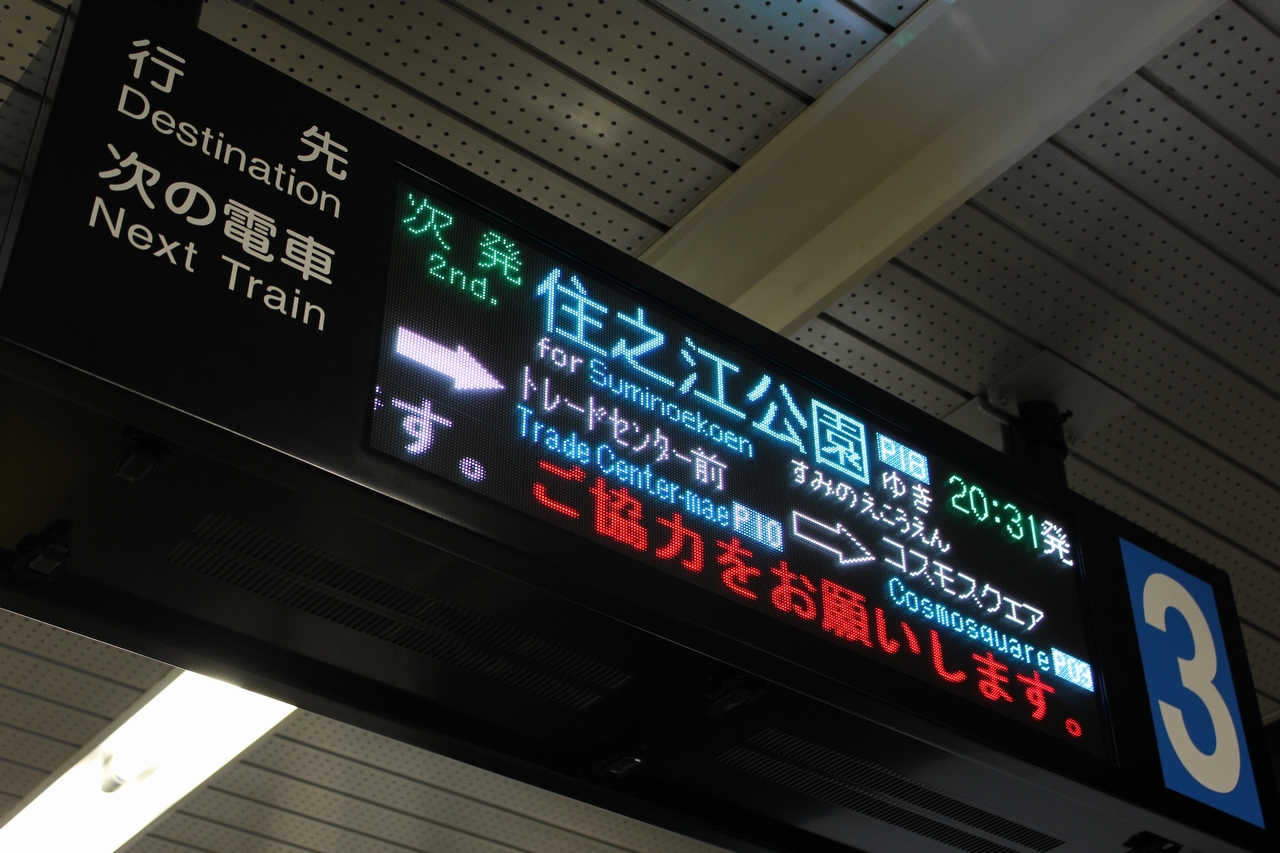 現在の旅客案内表示装置はフルカラーLED式で、最下段以外は日本語・英語・中国語・韓国語の4か国語に対応している。これまで開業時からの反転フラップ式や3色LED式が混在していたが、2012(平成24)年より順次更新が進められた。 |
